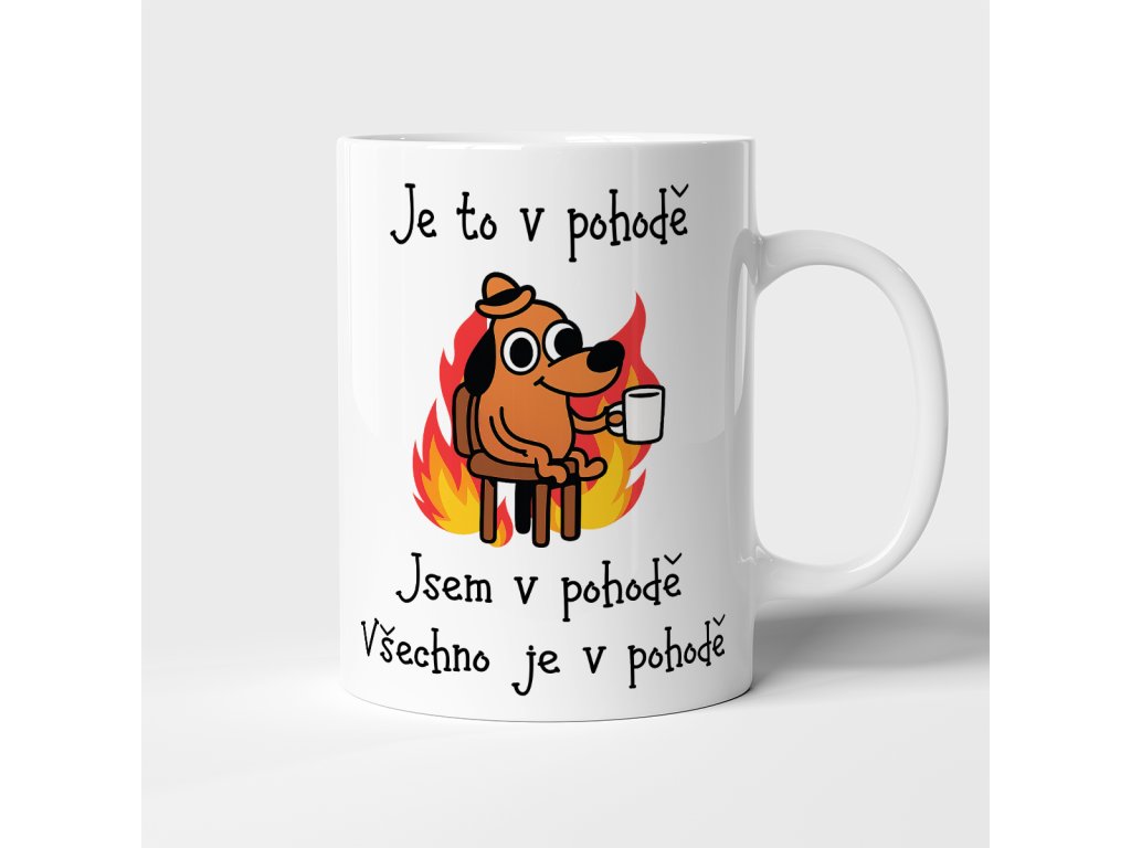 Když kolem všechno hoří, ale vy se snažíte zůstat v klidu – přesně to vystihuje ikonický motiv „Je to v pohodě“. Tento hrnek se stane vaším společníkem na všechny hektické dny, kdy si potřebujete připomenout, že nakonec to opravdu nějak v pohodě je.